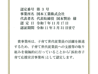 「浜松市子育て応援宣言事業所」に認定されました